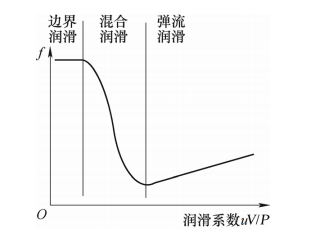 圖1為stribeck曲線(xiàn),可以表示滾珠絲杠副接觸面當(dāng)量摩擦因數(shù)的變化情況。可以看出,滾珠絲杠副的當(dāng)量摩擦因數(shù)隨著潤(rùn)滑系數(shù)的變化而變化,而stribeck潤(rùn)滑系數(shù)是由負(fù)載對(duì)應(yīng)應(yīng)力P、速度V及潤(rùn)滑黏度m組成,因此認(rèn)為負(fù)載、轉(zhuǎn)速及潤(rùn)滑黏度是滾珠絲杠副傳動(dòng)效率的主要影響因素。