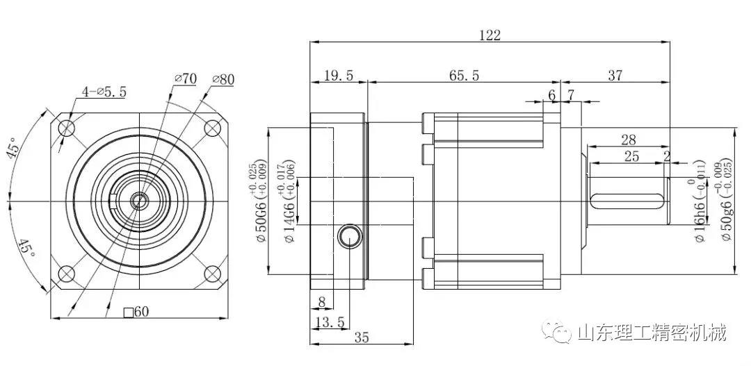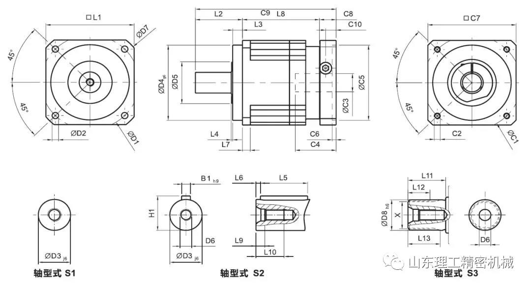例如這樣一個圖紙,第一個接口是減速機與伺服電機的接口,這個通常是需要定制的,減速機生產(chǎn)廠家會根據(jù)客戶選擇的伺服電機的接口來定制減速機的接口,所以在和減速機供應(yīng)商溝通的時候,你需要提供伺服電機的接口給他們。